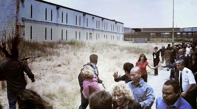 O filme já começa em um ritmo rápido, clipado, planos fechados, inclinados e tensos, repletos de elipses, flash backs e flash fowards: após serem cegados por uma luz branca vinda do céu, 80 pessoas que infortunadamente estavam em um mesmo quarteirão na cidade de Los Angeles, são abduzidos e despertam em um complexo institucional – na verdade, as cenas foram filmadas em um abandonado centro correcional juvenil.