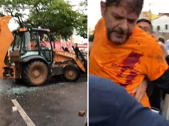 (b) Não faltaram as comparações nas redes sociais entre o atentado contra Bolsonaro em 2018 e os tiros sofridos por Cid Gomes em Sobral. Enquanto vemos fotos do senador sendo levado trajando uma camiseta ensanguentada, a facada no abdômen no então candidato a presidência sequer manchou sua camiseta, e a faca, de sangue...